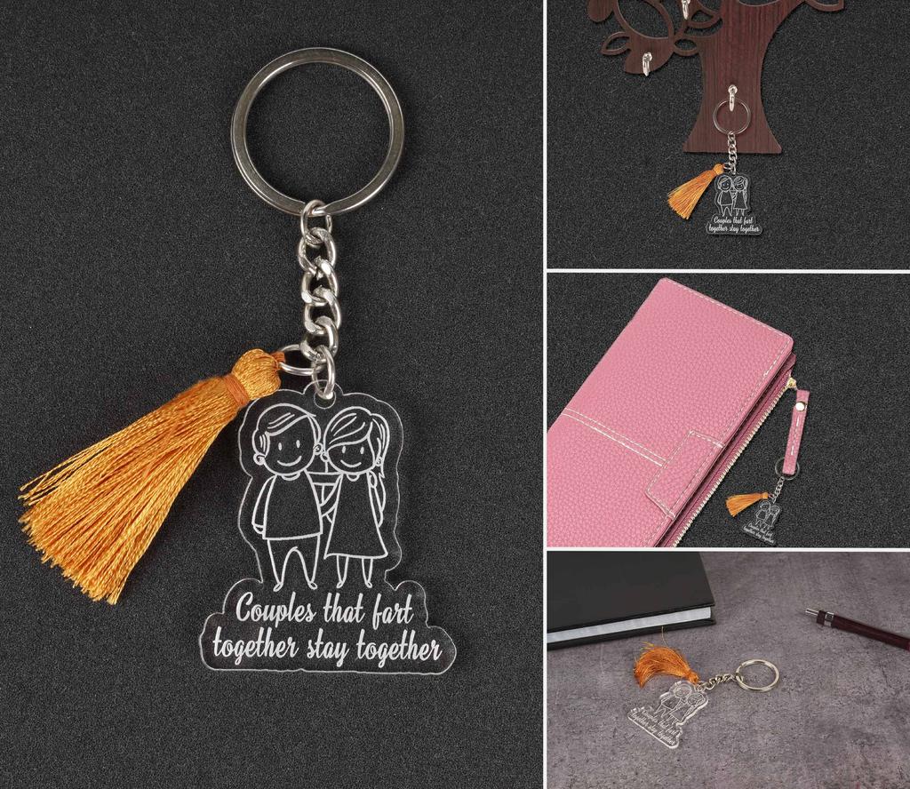 Inkdotpot Забавный брелок для ключей Пары, которые пукают вместе Оставайтесь вместе Акриловый гравированный брелок для ключей Забавные пары Брелок Новинка