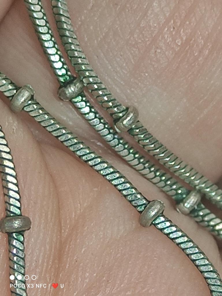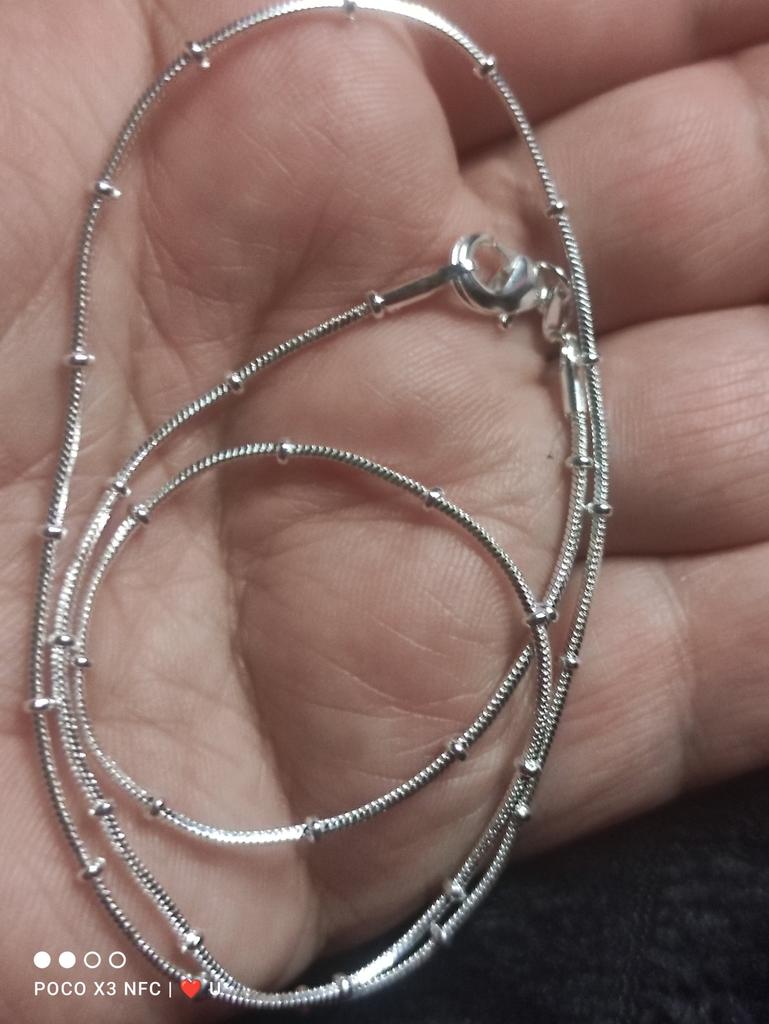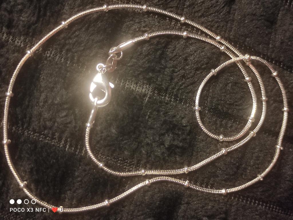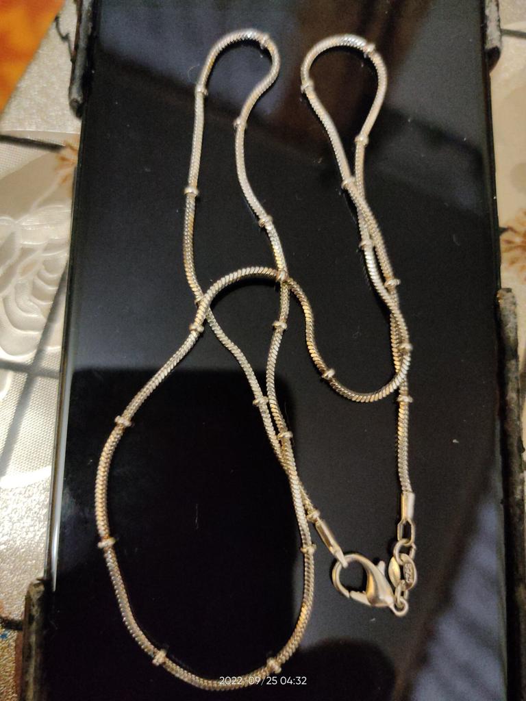 Украшение от DOTEFFIL . 🥈👌👍 Доставка чуть больше 1,5 мес в большой сборной посылке из 14 - ти заказов, живым треком . 🛩 📦 В индивидуальном пакетике и пупырчатом пакете, поэтому целая, не поломалась ! 👍 Очень нежная цепочка в цвете серебра . 🥈 Тоненькая и лёгкая . 🤏 Вес всего 5 гр . Длина 51 см вместе с замочком, т.е. полноценные 50 см, как заявлено. 👌 Тоненькая,в объёме 1,5 мм. Через каждые 1,2 см украшена статичными шариками , диаметром чуть больше, чем сама цепь . Замок -карабинчик. Кстати, можно надеть подвеску, т.к. очень аккуратная петля замка. Не часто такое бывает ! Обычно они такие широкие, что ничего подвесить невозможно 🤷♀️ ... И да, есть проба, кто этому верит 🥈 😉... Очень красивая, понравилась ! 😍 Рекомендую к покупке ! 💯 Спасибо, Джум ! 😘