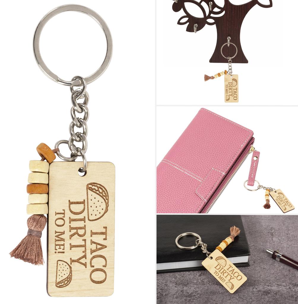 Inkdotpot Забавный брелок Taco Dirty To Me Брелок с гравировкой из дерева Забавный взрослый Забавная новинка