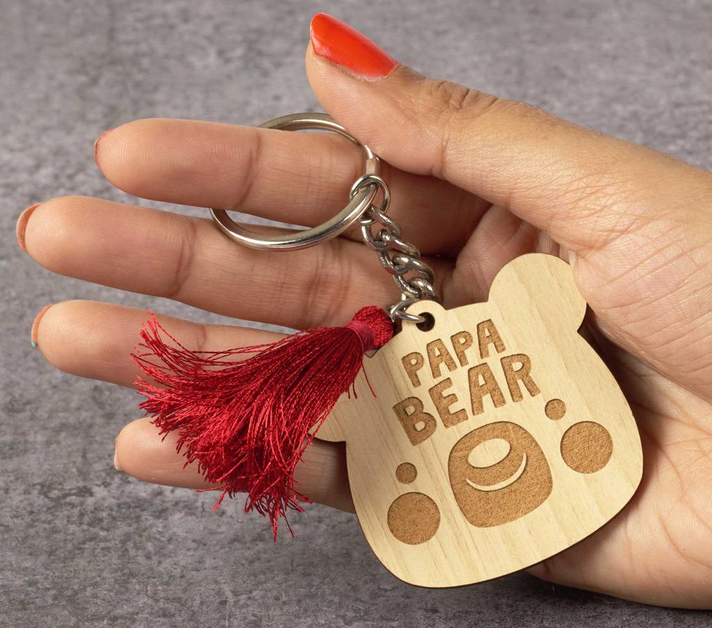 Inkdotpot Брелок Папа Медведь Деревянный Гравированный Брелок Подарок для Папы