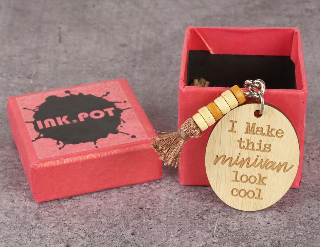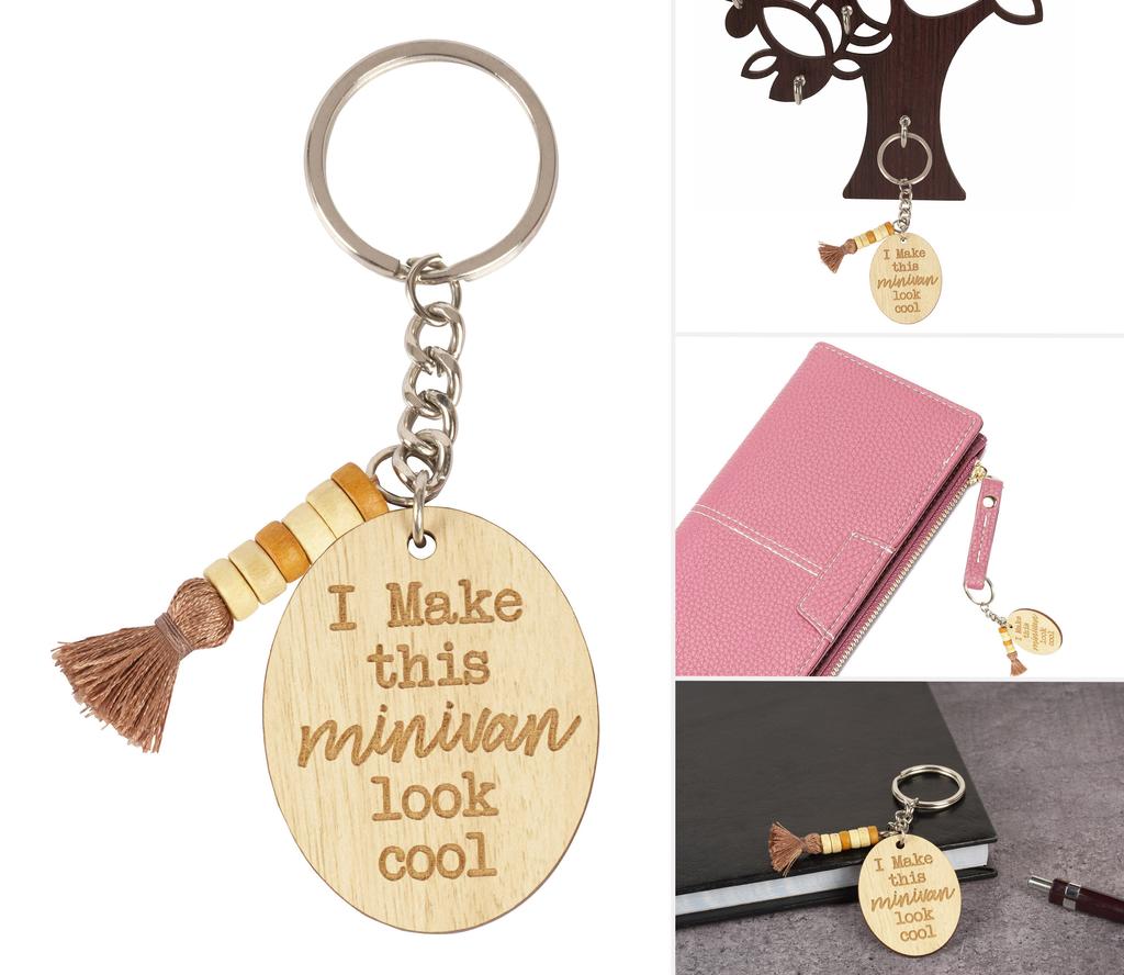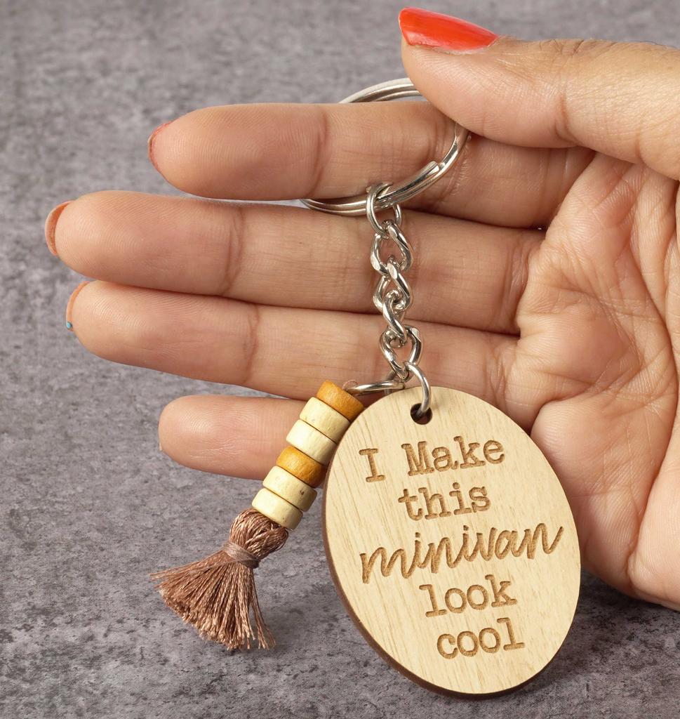 Inkdotpot Забавный брелок Я заставлю этот минивэн выглядеть круто Брелок с гравировкой на дереве Мама