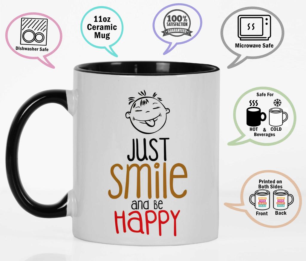 Inkdotpot Просто улыбнитесь и будьте счастливы - милая мотивирующая кружка для чая в подарок на день рождения для мужчин и женщин с цитатами 11 унций