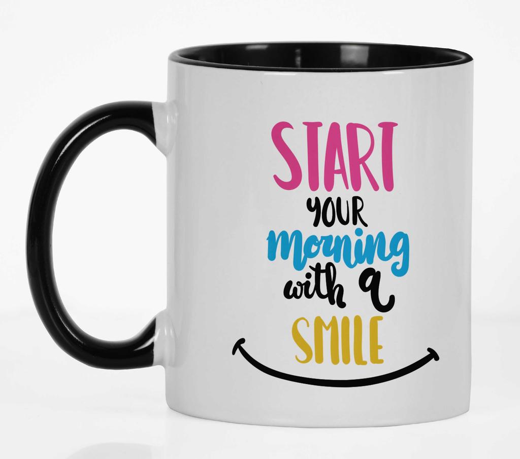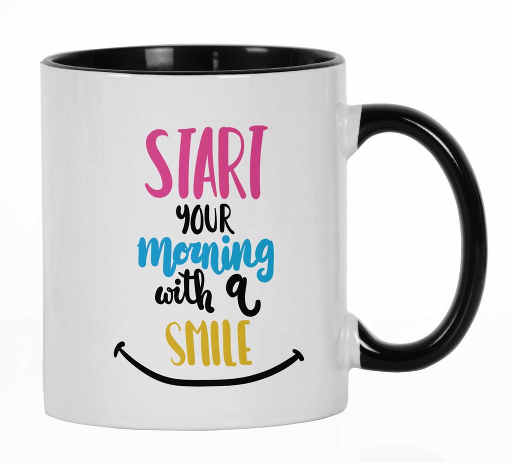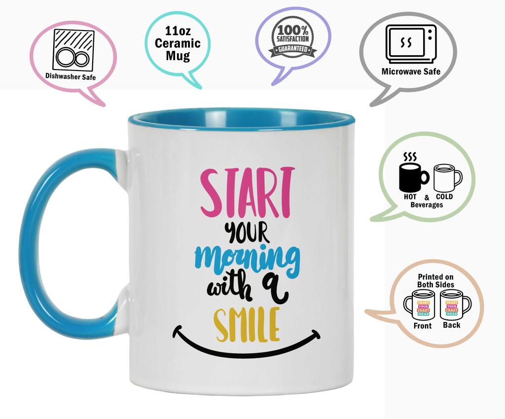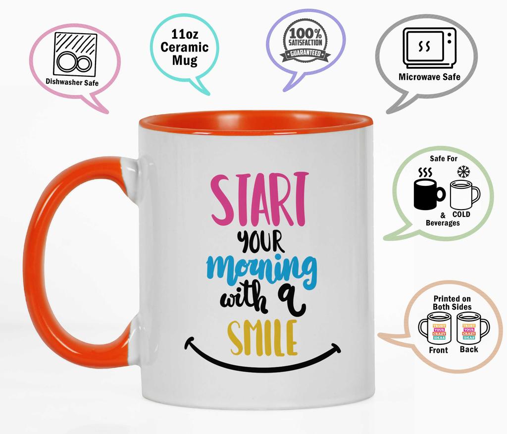 Inkdotpot Начните утро с улыбки. Керамическая кружка для кофе на 11 унций. Позитивные цитаты. Забавная новинка. Сотрудник. Начальник. Коллеги.