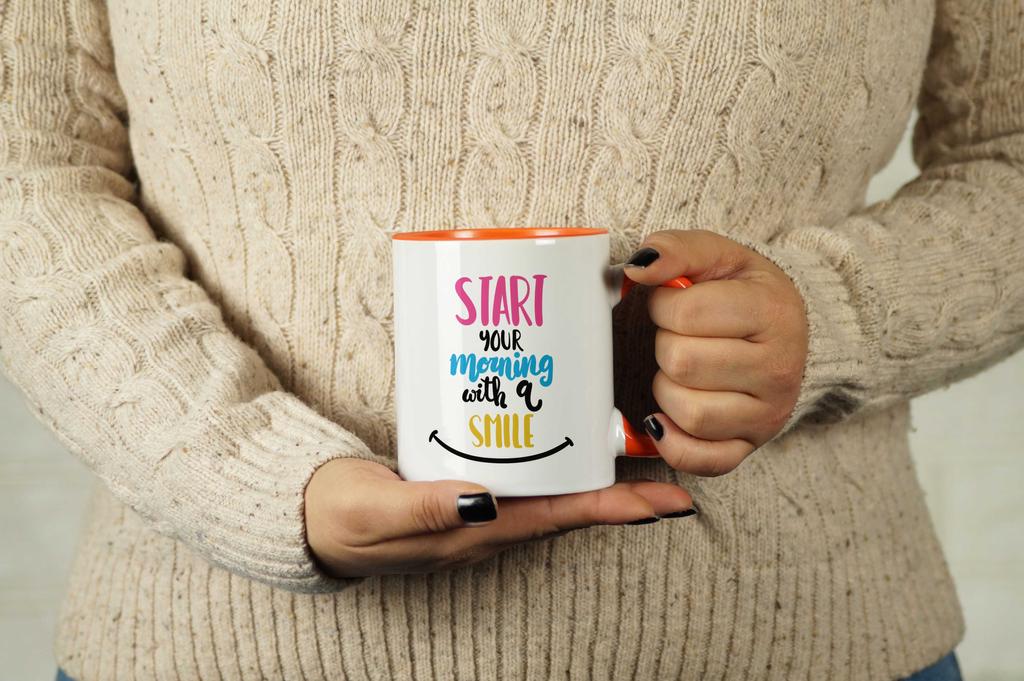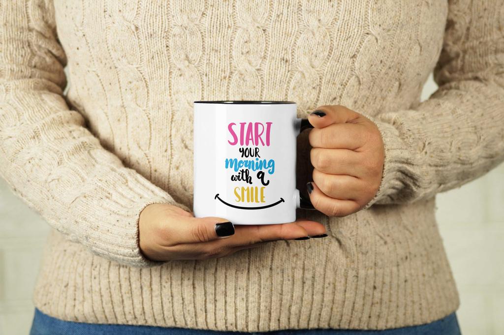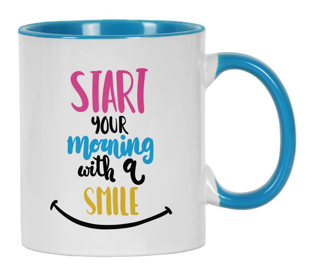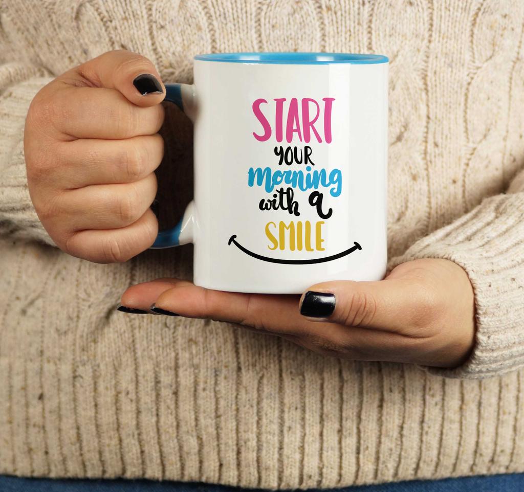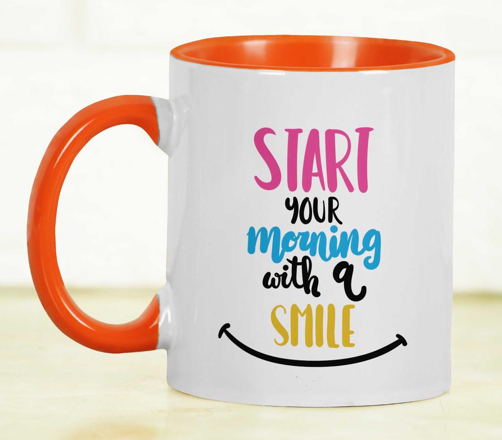 Inkdotpot Начните утро с улыбки. Керамическая кружка для кофе на 11 унций. Позитивные цитаты. Забавная новинка. Сотрудник. Начальник. Коллеги.