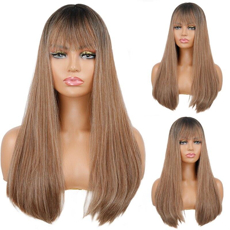 MISSQUEEN Ombre Коричневые Золотые Длинные Прямые Волосы Лолита Бобо Парики с Челкой Синтетические Парики для Женщин Косплей Жаростойкие