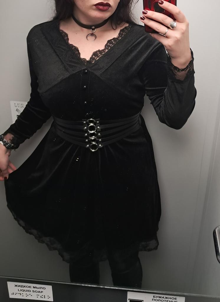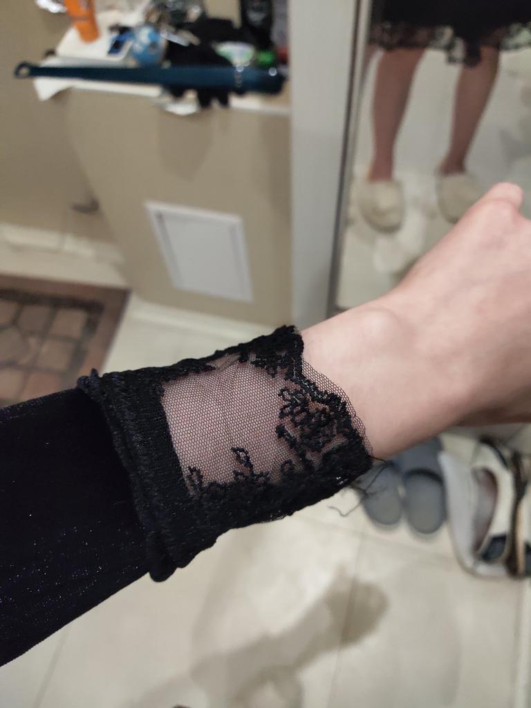 Основывалась на размерной таблице продавца, но не стоило, в плечах слишком узко, руки не согнуть и не поднять узко, да и сам рукав короткий. Из кружев торчат нитки. И сами они колются. Но ткань вроде достойная.