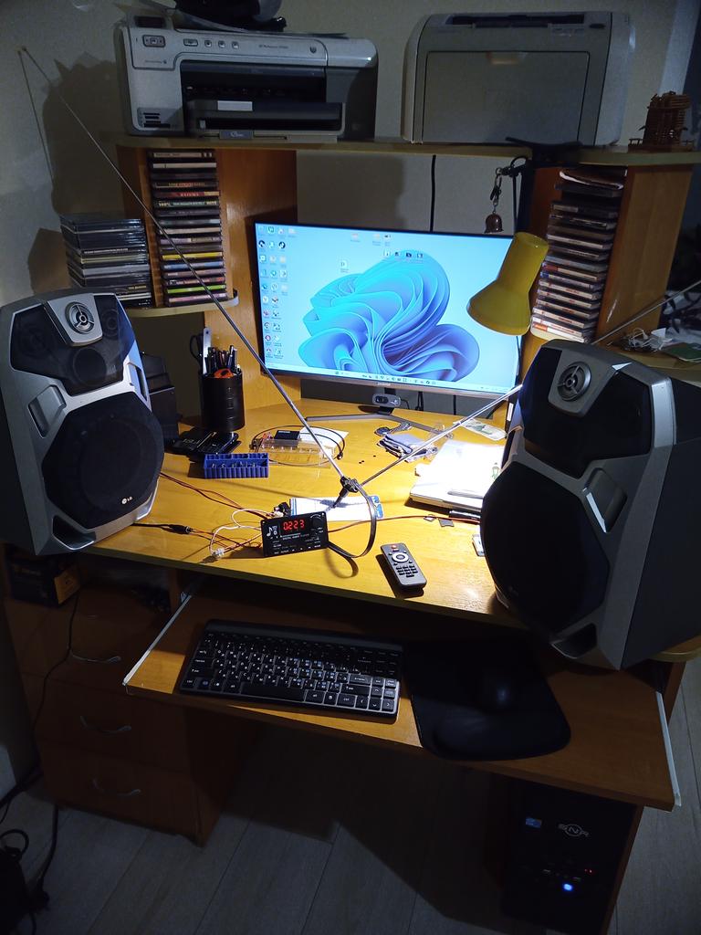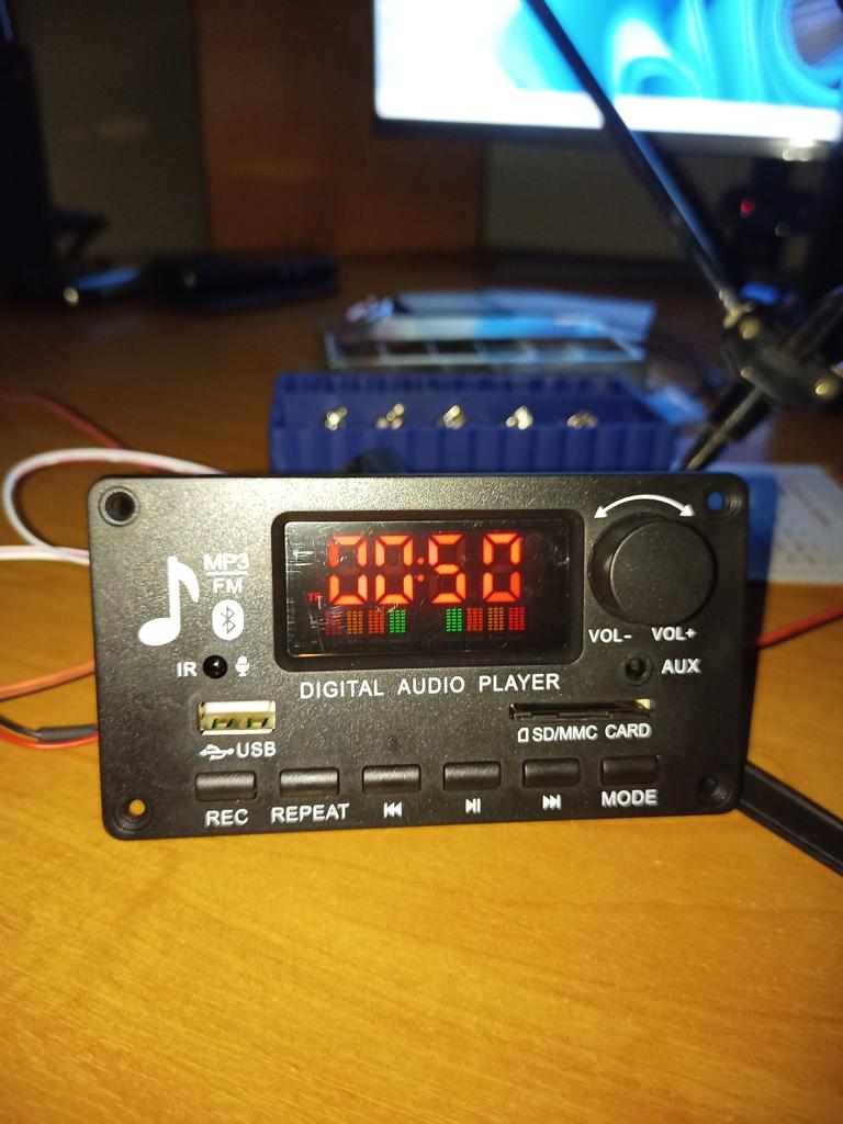 Плеер не плохого качества, есть выбор жанров: поп, рок, классика, джаз, по звучанию мощный, до 20 качество более -менее, после 20 начинает забивать басами, подключил блок питания 5В 2А шума нет в колонках, USB не читает, читает карту. Долго думал куда воткнуть провод антенны, выкрутил четыре шурупа, перевернул плату, с обратной стороны подписано FM, проводок тоненький, ловит хреново.