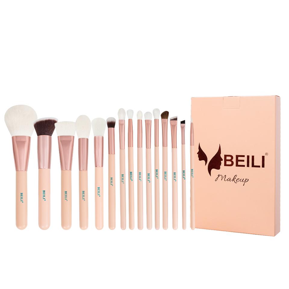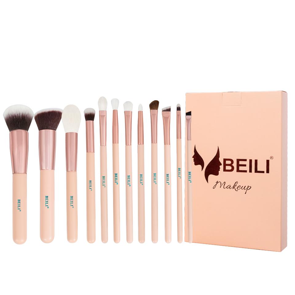 BEILI Розовые кисти для макияжа, высококачественная пудра, основа, румяна, тени для век, набор кистей для макияжа, натуральные волосы, brochas maquillaje