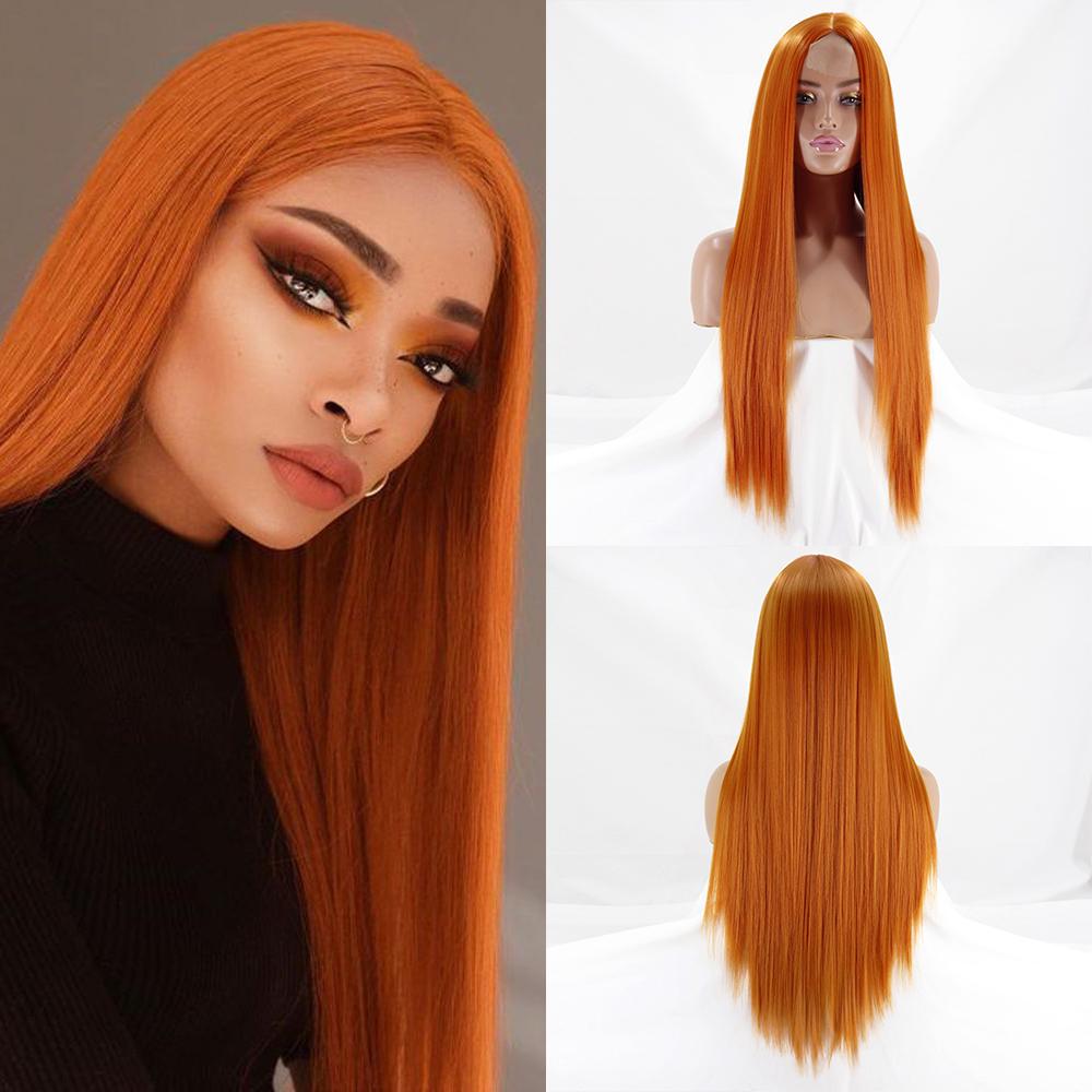 MERISIHAIR Средняя часть Ombre Оранжевый длинный прямой синтетический парик Черный Блондин Розовый 30-дюймовый термостойкий натуральный парик для косплея