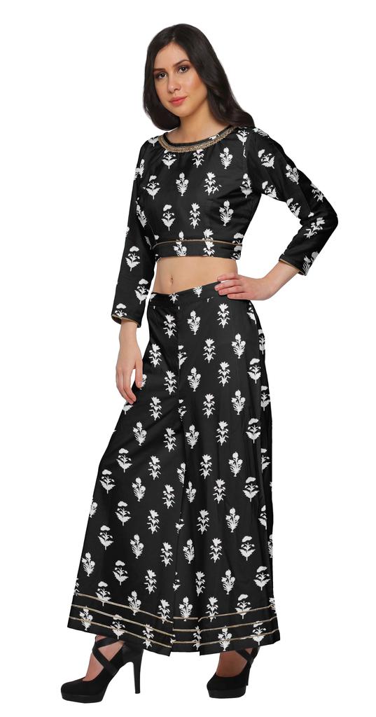 * Оденьтесь для праздничного образа в этом укороченном топе с принтом и брюках палаццо от Moomaya. Этот комплект, созданный с использованием хлопка, обеспечивает оптимальный комфорт владельцу. Этот комплект состоит из укороченного топа с кружевным вырезом «лодочка» спереди и V-образным вырезом сзади с тканевыми деталями на пуговицах, длинными рукавами . Включает в себя брюки палаццо с частично эластичной талией. Сочетайте этот комплект с подходящими сандалиями и вашими любимыми украшениями, чтобы создать дерзкий образ.