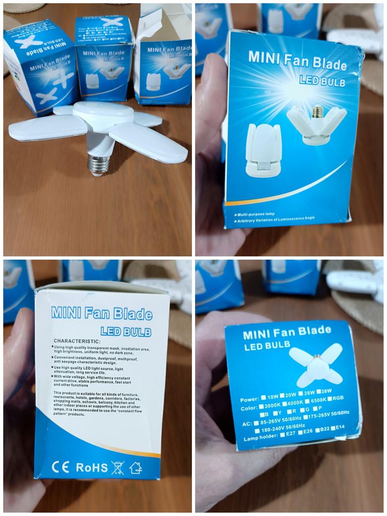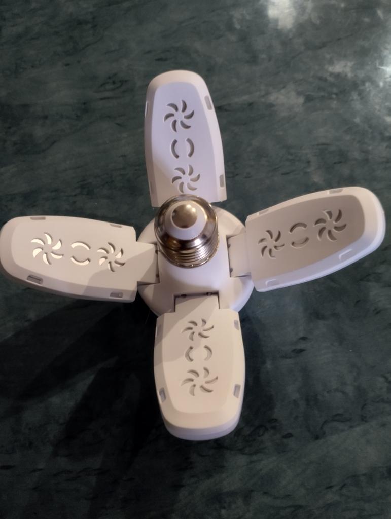 🤩 ЯРКАЯ СВЕТОДИОДНАЯ ЛАМПА С ЛОПАСТЯМИ - ДЛЯ САНУЗЛА, КЛАДОВКИ, МАСТЕРСКОЙ 💯👍 🙋♂️ Привет, друзья и подписчики! Для яркого освещения и красивого визуального эффекта заказал сразу три вот таких ярких лампы. Мы иногда покупаем необычные световые лампы. У меня есть диско-лампы, которые мы вкручиваем на улице и в доме в новогодние праздники. Недавно я увидел эту раскладную лампу на Джум, и сразу заказал целый комплект. Это необычная раскладная светодиодная лампа, она же светильник. ✈️ Доставка быстрая - всего 25 дней, трек полностью отслеживался. Упаковано не очень надёжно - коробочки изрядно помялись. Но лампы целые и невредимые, к счастью. Все три работают! У каждой лампы три светящиеся лопасти, которые могут складываться, также светится фонарь в центре. Мне она напоминает подвесной вентилятор. Технические характеристики лампы: Срок службы - 6000 часов; Мощность - 28 Вт; Аналог лампы накаливания (Вт) - 125 Вт; Напряжение - 165-265 В; Цветовая температура - 6500 К (холодный белый) Световой поток - 2000 лм; Индекс цветопередачи- Ra 70; Уровень защиты соответствует стандарту - IP 30 Размер лампы - 65×120×225 мм. 💡 Цоколь стандарта Е27, лампа небольшого размера, патрон хорошего качества, вкручивается без проблем. Лампу можно оставлять как в закрытом состоянии, так и с раскрытыми лопастями. Мне нравится, как она освещает помещение при раскрытых лопастях - получается очень ярко, свет рассеивается на большее расстояние. При закрытых лопастях свечение не такое интенсивное, у него узкая направленность. 🤩 Срок службы данной лампы составляет 6.000 часов, по аналогу лампы накаливания получается 125 Вт, это достаточно хороший вариант. Светит она холодным белом светом. Лампа работает без сильного нагрева, в патроне нет никаких посторонних шумов или треска. Всё классно, в общем! Я доволен покупкой, рекомендую всем желающим.