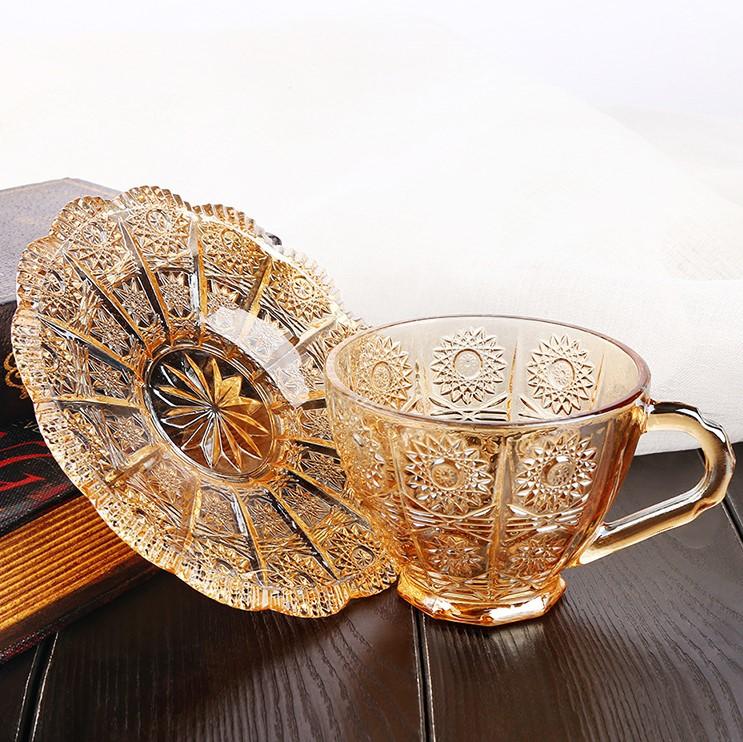 Стеклянная чашка в стиле ретро в стиле подсолнечника, кофейная чашка, блюдо, набор из двух предметов, стеклянная чашка для послеобеденного чая, кофейная чашка