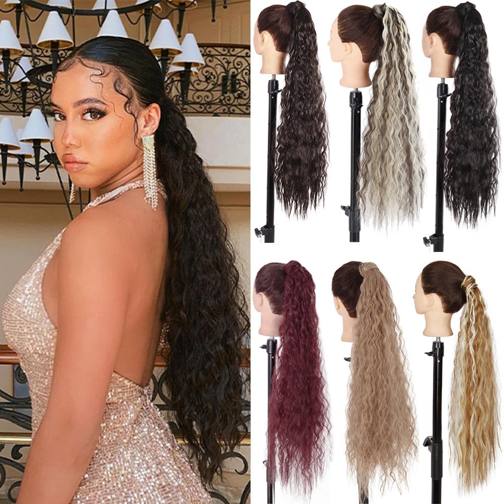 MERISIHAIR 34 дюйма синтетические волнистые длинные натуральные волосы для наращивания хвоста на заколке вьющийся хвост для женщин — купить товар онлайн с бесплатной доставкой по всему миру!