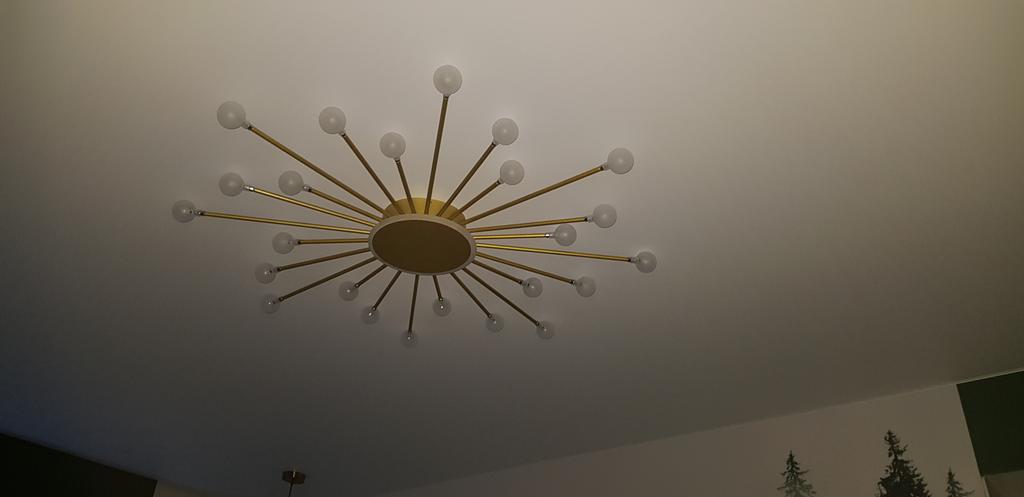 Я наконец-то получил свою лампу, общий дизайн идеален, упаковка была целой и невредимой. Продавец предоставил видео, и после его просмотра я собрал лампу. На фоне белого потолка золотистый цвет люстры и трехцветное освещение создают теплое свечение – это очень круто. Мне очень нравится эта лампа, рекомендую этого продавца всем.
