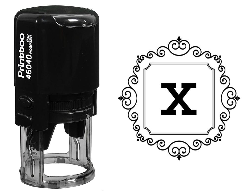 Printtoo Square Swirl Border X Alphabet Monogram Initial R-40 Self Inking Rubber Stamp Office