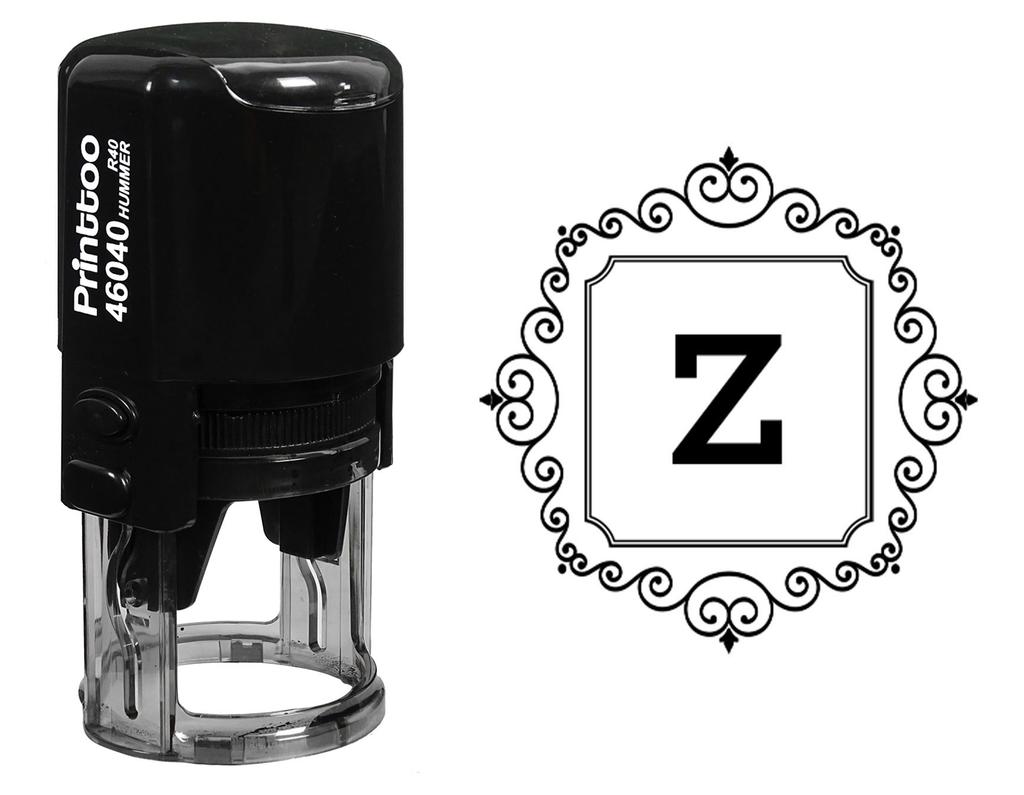 Printtoo Square Swirl Border Z Alphabet Monogram Initial R-40 Self Inking Rubber Stamp Office