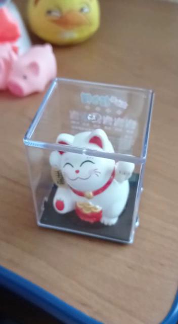 Очень милый котенок, снизу у него есть липучка, сзади, на попке, есть солнечная батарея, благодаря которой он может безостановочно махать лапкой.