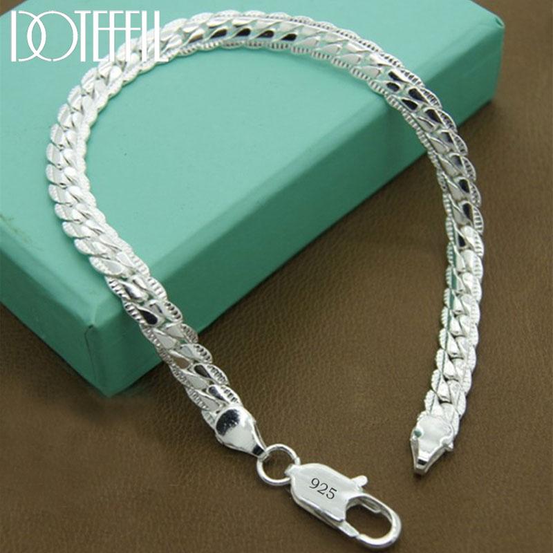 Браслет 6 мм 18/19/20 см плоская боковая цепочка 925 стерлинговое серебро свадебные украшения — купить товар онлайн с бесплатной доставкой по всему миру!