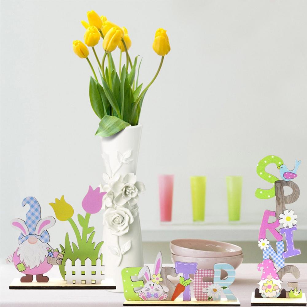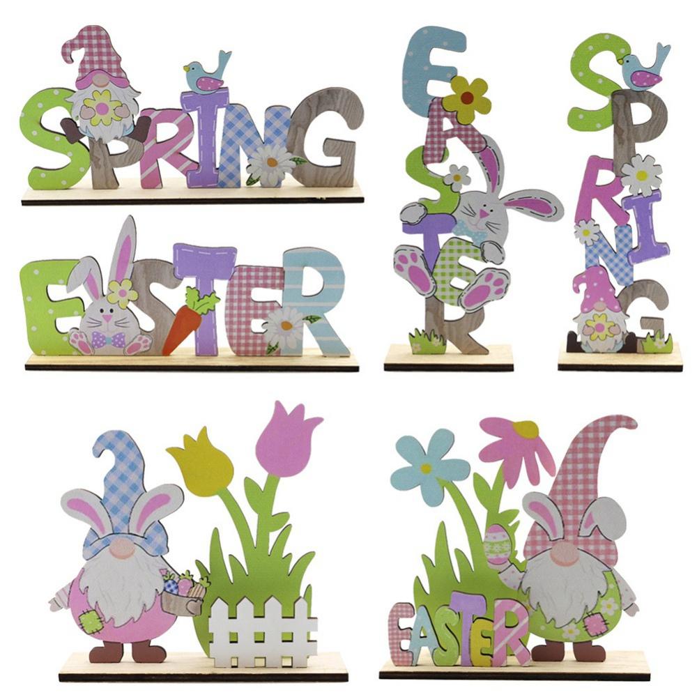 Пасхальное весеннее украшение, деревянный орнамент, кролик, морковь, безликий гном, домашний декор для вечеринки, настольный компьютер для детей, подарки для комнаты
