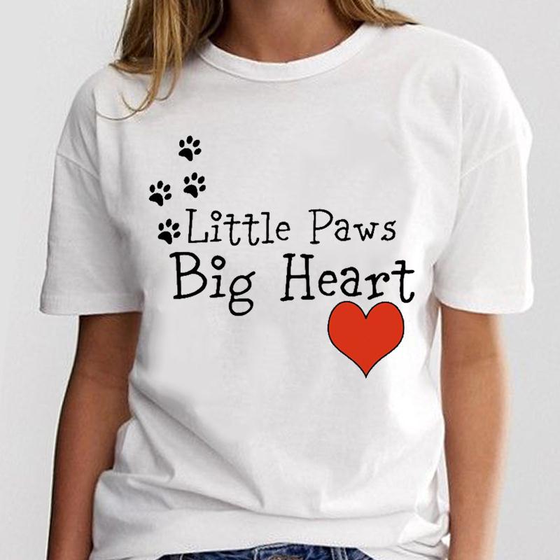 Футболка Лето Paw Love Heart Собака Кошка Домашнее животное Женская модная футболка с принтом с коротким рукавом Женская женская одежда Повседневная футболка с рисунком