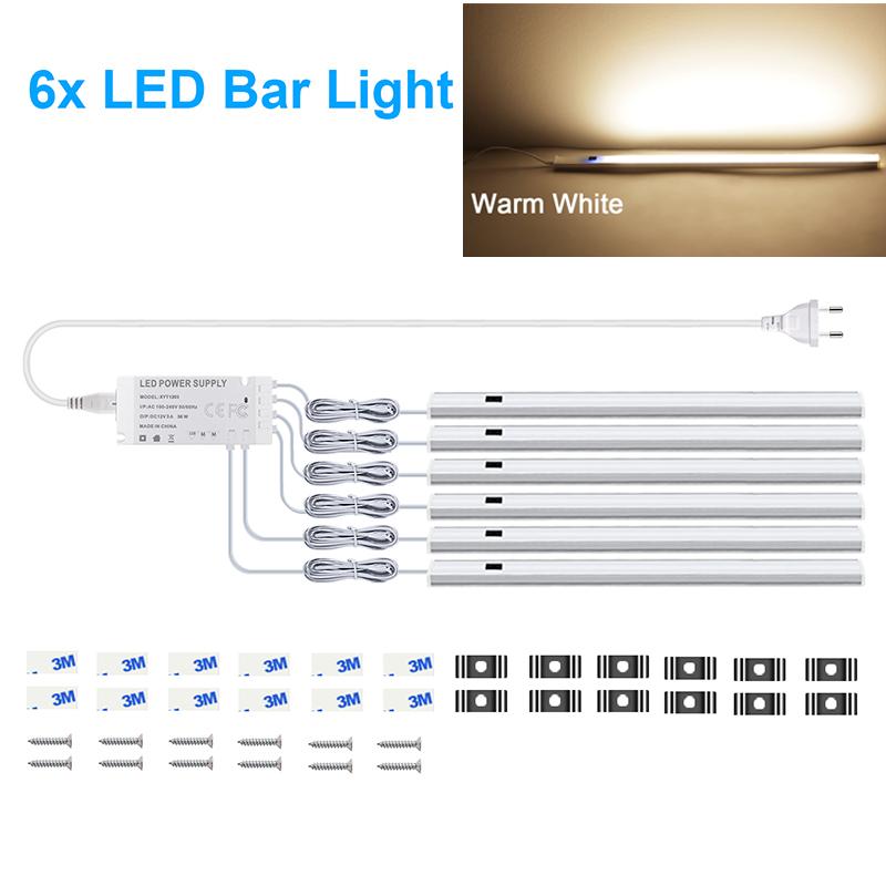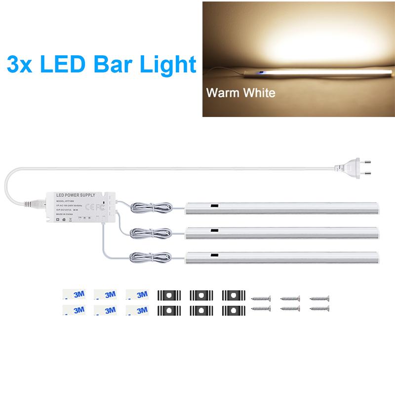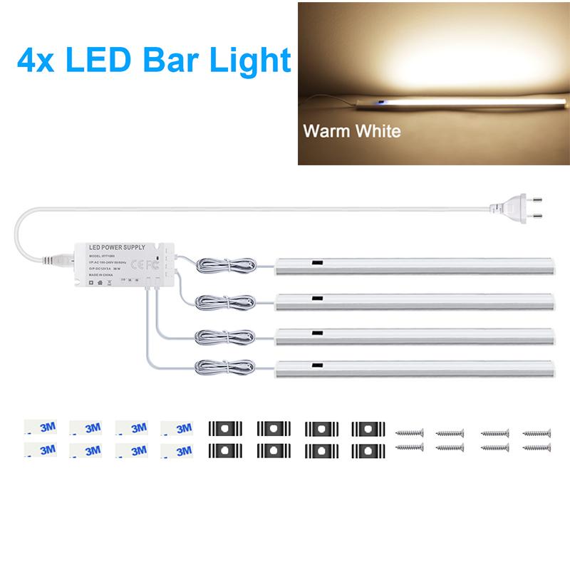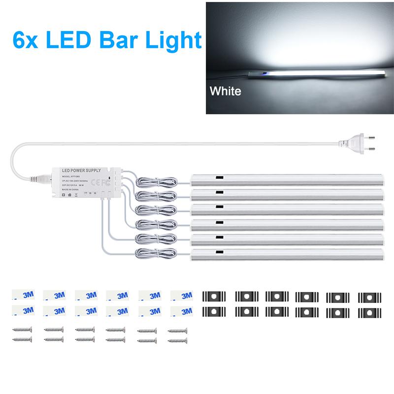DIY светодиодный светильник под шкафом, датчик движения руки, кухонный светильник 30/40/50 см, 12 В, алюминиевый профиль, лампочка для домашнего освещения с вилкой ЕС, США