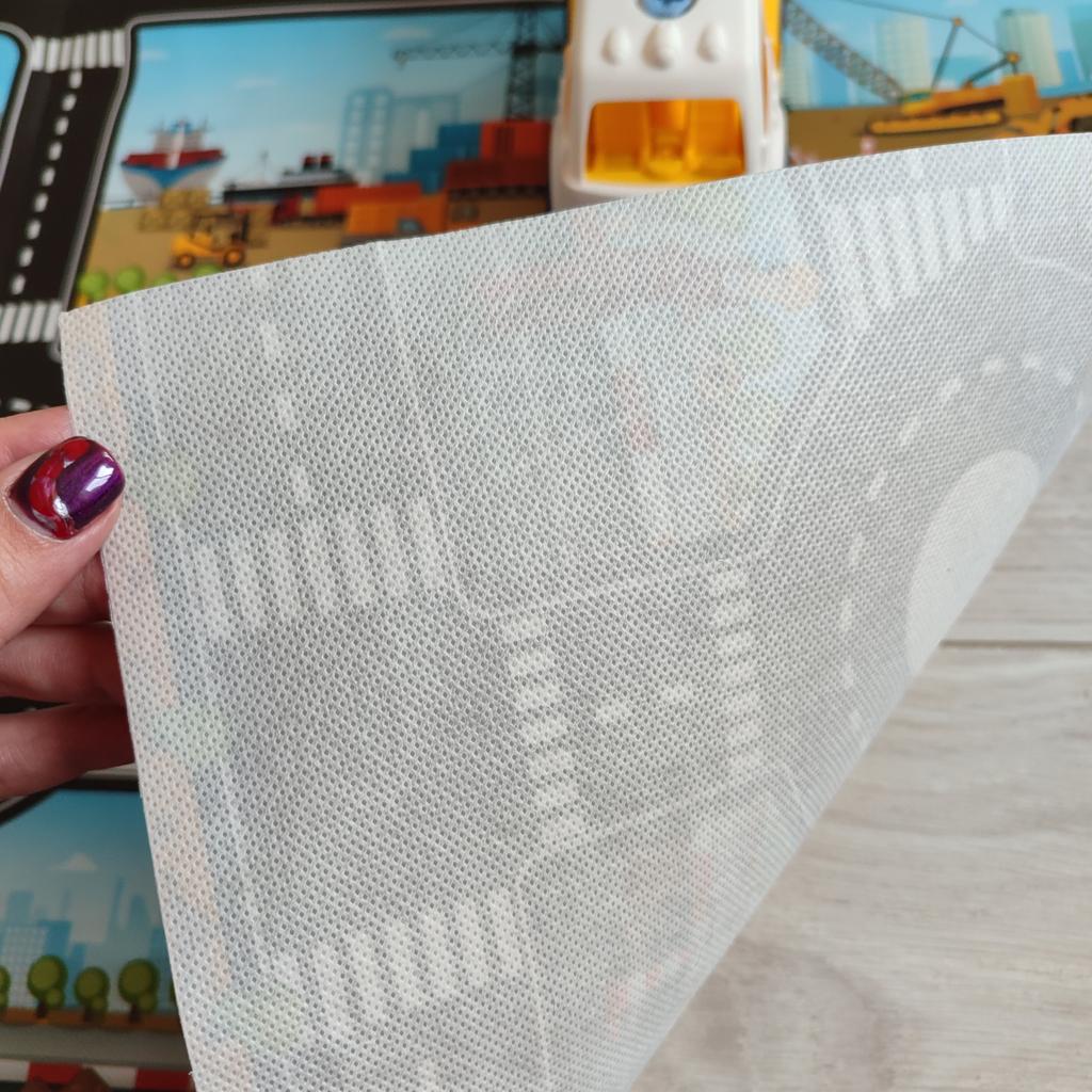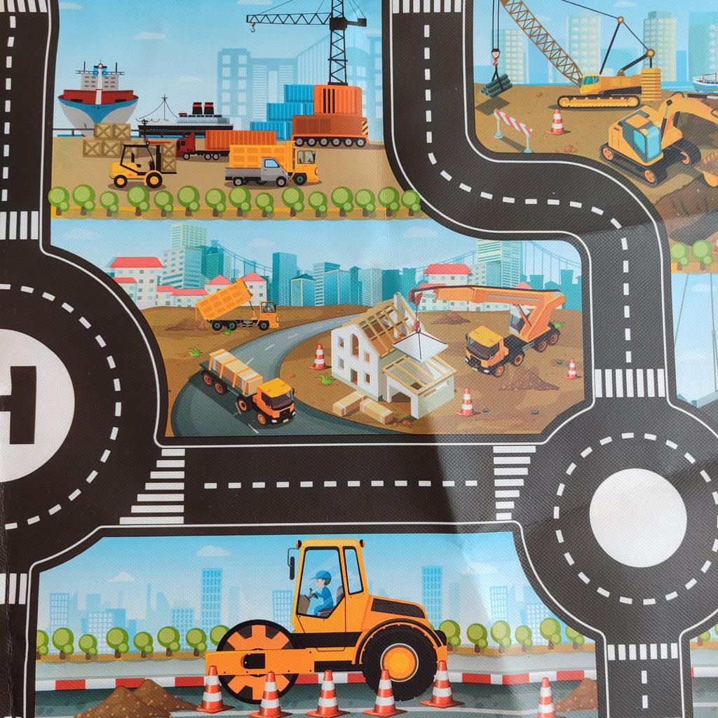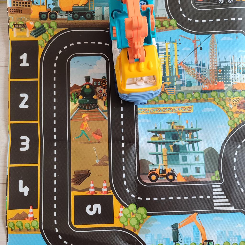 Детский игровой коврик "Стройка". Доставка заняла почти месяц до отделения Укрпочты, соборная посылка Joom. Коврик был сложен, но быстро выпрямился, заломы практически не заметны. Яркий и интересный коврик для детских игр, на нём изображены дороги и строительная техника, отличный вариант для игры машинками. Размер соответствует заявленному 57*83 см. Материал: ткань из полимера, достаточно тонкая, края не обработаны, простой срез. Ребёнок играется, ему интересно, поскольку машинки - это самые любимые игрушки, а с этим ковриком игра более увлекательная и разнообразная. Можно дополнительно заказать набор с дорожными знаками и светофорами, чтоб разнообразить игру. Я приобретением довольна, и ребенок тоже!