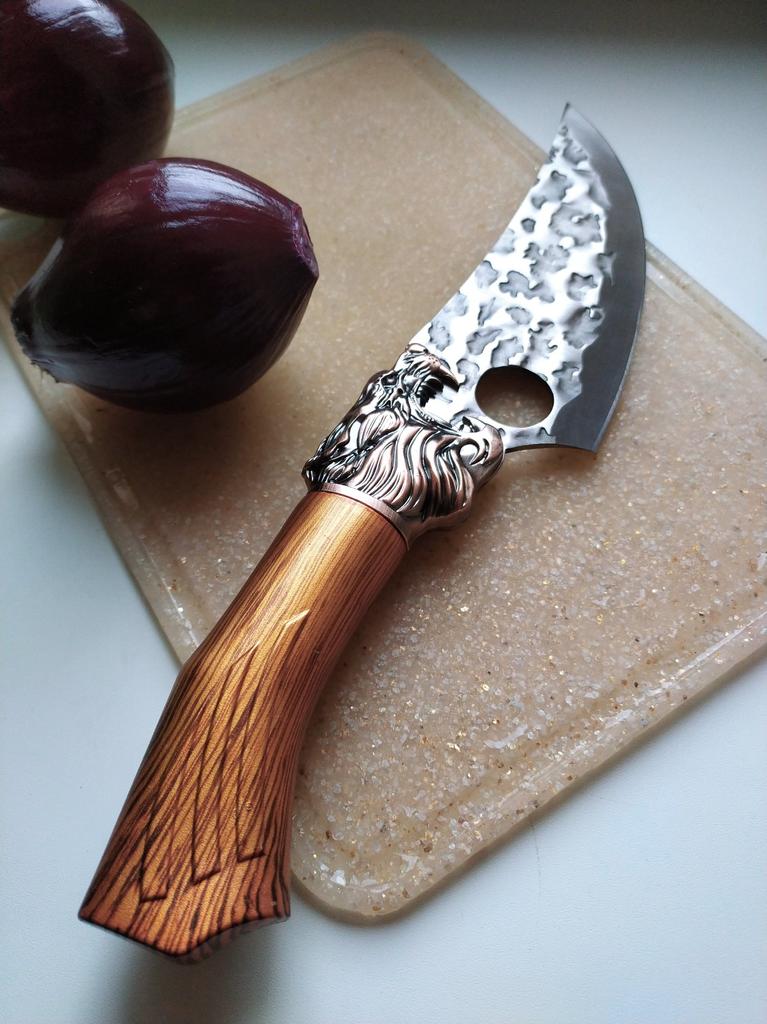 🔪 КЛАССНЫЙ ОБВАЛОЧНЫЙ НОЖ С ДЛИННЫМ, ШИРОКИМ И ОСТРЫМ КЛИНКОМ РУЧНОЙ КОВКИ 👍 🙋♂️ Я сбился со счёта своих заказов в нескольких категориях, одной из которых являются ножи. Брал длинные и короткие, узкие и широкие, лёгкие и тяжёлые. Нет, я не маньяк, да и фанатом холодного оружия себя не считаю (хотя какое там оружие, когда речь идёт о кухонных ножах!). Ничего не могу с собой поделать - если мне что-то нравится и вызывает доверие, то это обязательно должно быть и у меня, и у всех моих родных и близких. 🔪 Решил заказать для своей домашней коллекции второй нож из серии с рычащей головой тигра. Это красивенный обвалочный нож, для разделки мяса. У производителя пять разных ножей, хочу заказать все постепенно. Сегодня получил этот. Нож понравился! Единственной ложкой дёгтя могу считать здесь то, что клинок идёт не на всю длину ножа, а только немного заходит в рукоятку. В остальном ножичек что надо, вопросов нет - красивый, качественный, удобный, острый, по приемлемой цене. ✈️ Доставка 30 дней, трек полностью отслеживался. Упаковка приличная - плотная картонная коробка, сам нож дополнительно в целлофане. Ножен в этот раз не оказалось, правда. Впрочем, ни на одном фото продавца я их и не видел, в отличие от предыдущих ножей из других магазинов. Нож реально ручной ковки, его действительно выковал некий китайский кузнец, которого я никогда не увижу и не узнаю, естественно. Сделал на совесть, настоящий мастер своего дела. 🔥 Оригинальный дизайн ножа никого не оставит равнодушным! Яростно рычащий тигр, из пасти которого торчит острейший клинок непривычной ширины. Детали подогнаны друг к другу плотно, ничего не люфтит и не болтается. Продуманная эргономика - нож удобно ложится в руку. Клинок очень острый, поэтому будьте осторожны в обращении с таким ножом! Выглядит нож роскошно, без преувеличения. 🔪 Здесь у клинка крутая текстура стали - и визуально, и тактильно. В данном ноже меня ещё порадовала рукоятка. Хоть и не из дерева, а из пластика под дерево, с неким перламутровым отливом. Очень эргономичная, удобная, хорошо ложится в руку. Придраться не к чему - нож классный, своих денег точно стоит. Рекомендую всем желающим.