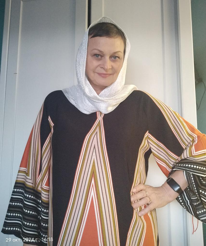 Заказала этот шарф для подруги в подарок. Она ,как раз,хотела примерно такой шарф для походов в церковь. Думаю,что он ей понравится. Мне понравился. Сделан из ткани с добавлением металлизированной нити,поэтому увесистый,но мне понравилось,как шарф ложится и ниспадает.