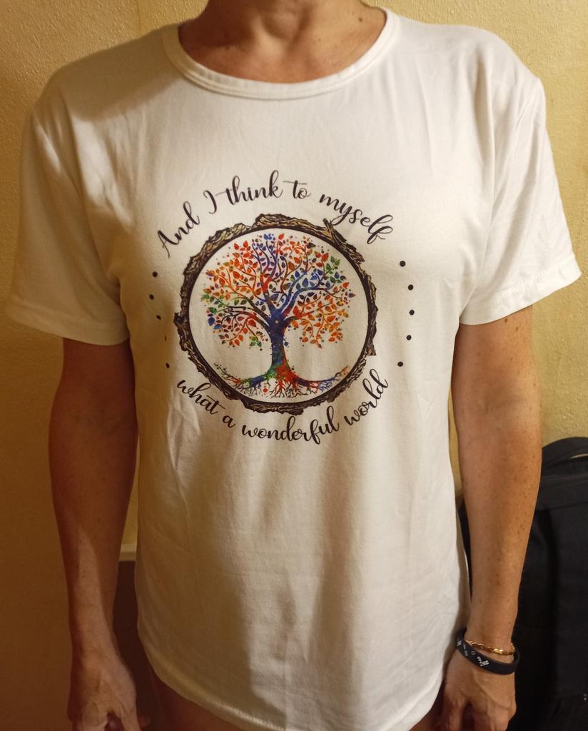 Футболка пришла не такая как на картинке, горловина и рукава другие. Ткань не хлопок, а 100 % синтетика. Размер XXL на мой 42 оказался велик. Качество рисунка хорошее, не облезет и не сотрется.