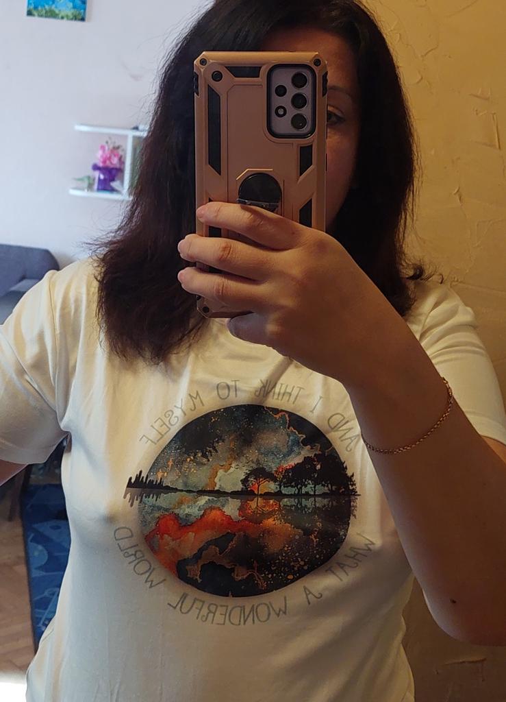 Футболка очень приятная к телу.картинка выбита на футболке.очень милая футболок с интересным рисунком.разм.сетка соответствует