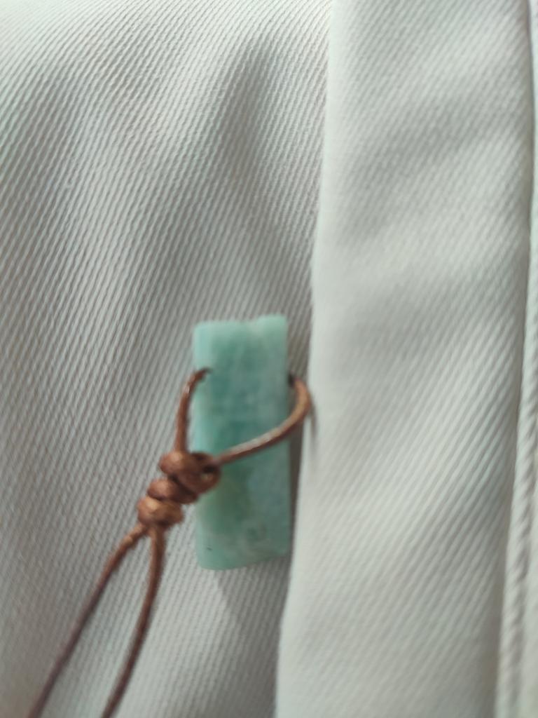 При первом же надевании, даже не ношении, при регулировке длинны, механизм веревки порвался. Один из узелков просто вышел из своей петли и так на каждом А во втором кулоне (синем) явно сделали дырку не в том месте, ибо эффект поломанного камня должен быть снизу. Это, конечно не критично, но из-за этого камень перекручивается туда-сюда.