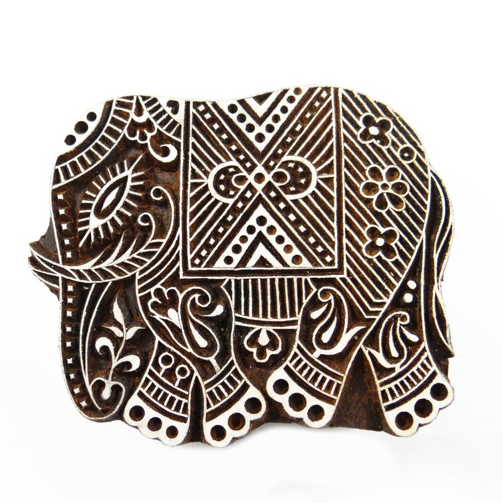 Коричневый ручной резной печатный блок Деревянный текстильный штамп Блок штампа слона