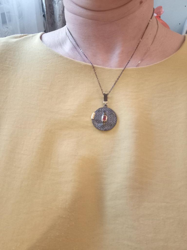 Замечательный кулончик! Заказываю второй раз! Первый раз для дочери, теперь для себя! Кулончик - часть набора: серьги, кольцо и кулон. Набор украшений оригинальный. Мы с дочерью приобрели 2 набора сережек и поделили их так, чтоб каждой досталась пара одинаковых сережек (кто видел серьги, тот знает, что в наборе одна сережка длинная, а другая круглая). Вот теперь я и дочь имеем полные наборы из сережек, кольца и кулона! Советую приобретать! Носите с удовольствием и будни, и в праздники. Большое спасибо за кулон! И весь набор!