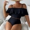 Женский купальник, черная лямка, сексуальный цельный тонкий купальник с высокой талией, бикини