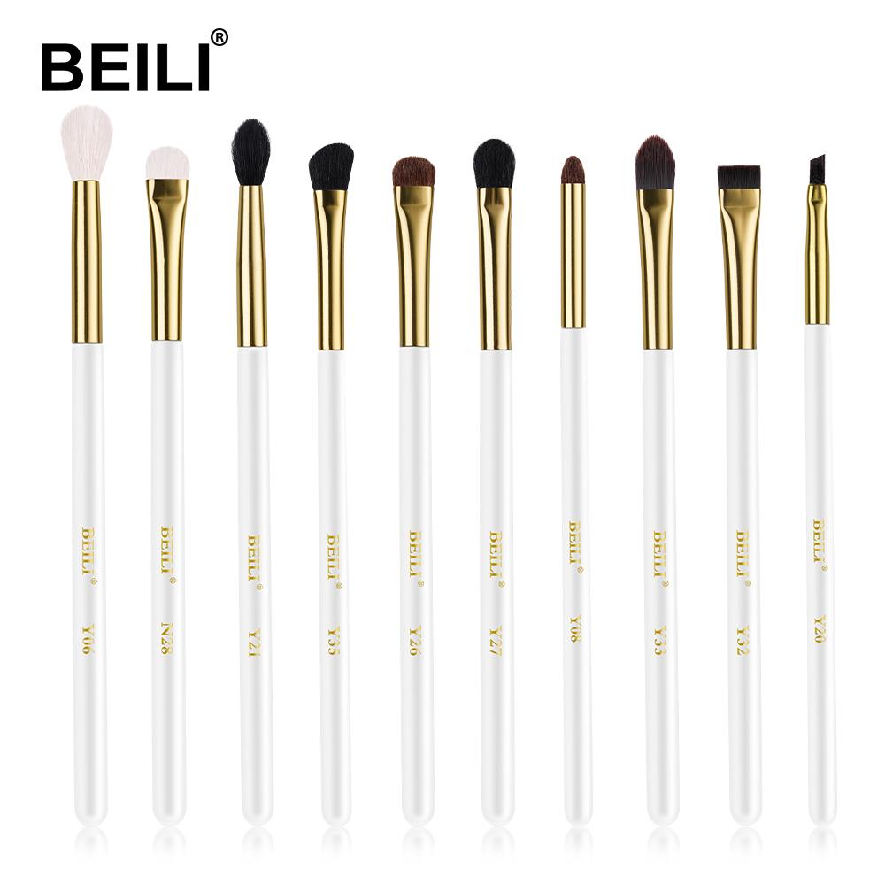 Кисти для макияжа BEILI, белые, золотые, 10 шт., тени для век, брови, набор кистей для подводки глаз, козья шерсть, инструменты для макияжа глаз, brochas maquillaje — купить товар онлайн с бесплатной доставкой по всему миру!