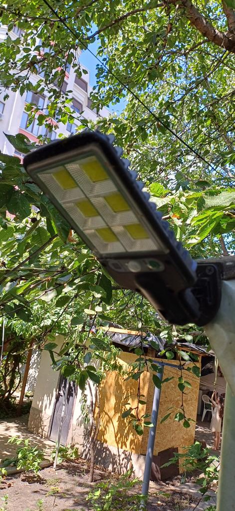 Поставила на деревья на участке. Пока не увидела на сколько освещает. Надеюсь что не украдут. Немного неудобно в том плане что нет наклона у держателя. Устанавливается так что сам светильник можно установить только под 90° к земле.