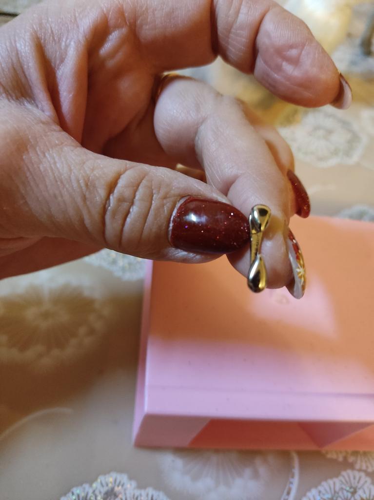 Сначала не поняла как их одеть А потом разобралась Интересная конструкция,можно носить как отдельно одну каплю ,так и парно Единственное что если у вас маленькая мочка уха как у меня - не получится «эффект невесомости» как задумано Но сами серьги очень интересные