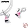 WOSTU Стерлингового Серебра 925 Розовое Платье Корона Принцесса Шарм Подвеска Из Бисера Подходит Оригинальный Браслет Ожерелье Для Женщин Ювелирные Изделия