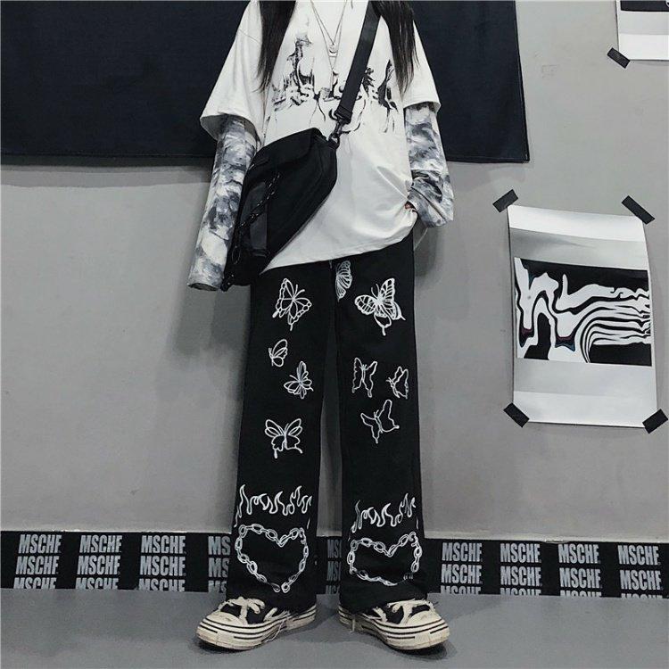 Уличная одежда, готические широкие брюки большого размера, женские повседневные брюки в стиле хип-хоп Y2k Harajuku Femme Pantalon, винтажные темные брюки, эстетические, 2022