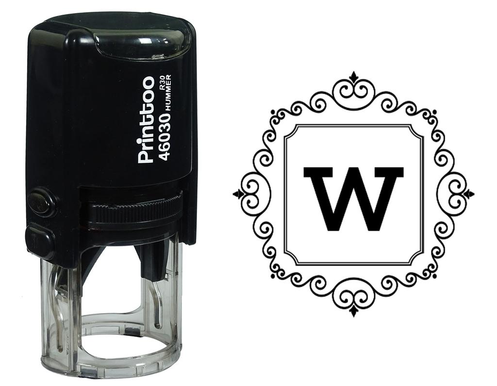 Printtoo Square Swirl Border Alphabet W Monogram Initial Self Inking Rubber Stamp Office