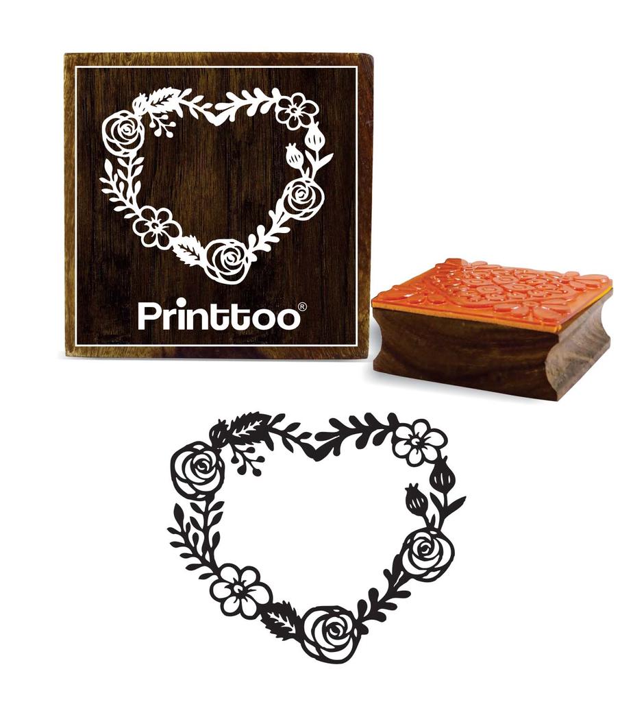 Printtoo Квадратный цветочный венок Деревянный резиновый штамп Ремесло Текстиль Коричневые штампы-2 x 2