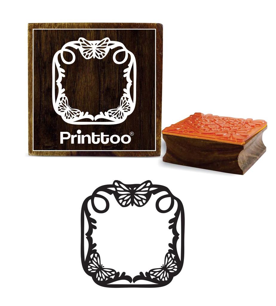 Printtoo Craft Textile Butterfly Square Frame Brown Wooden Rubber Stamp Block-2 x 2