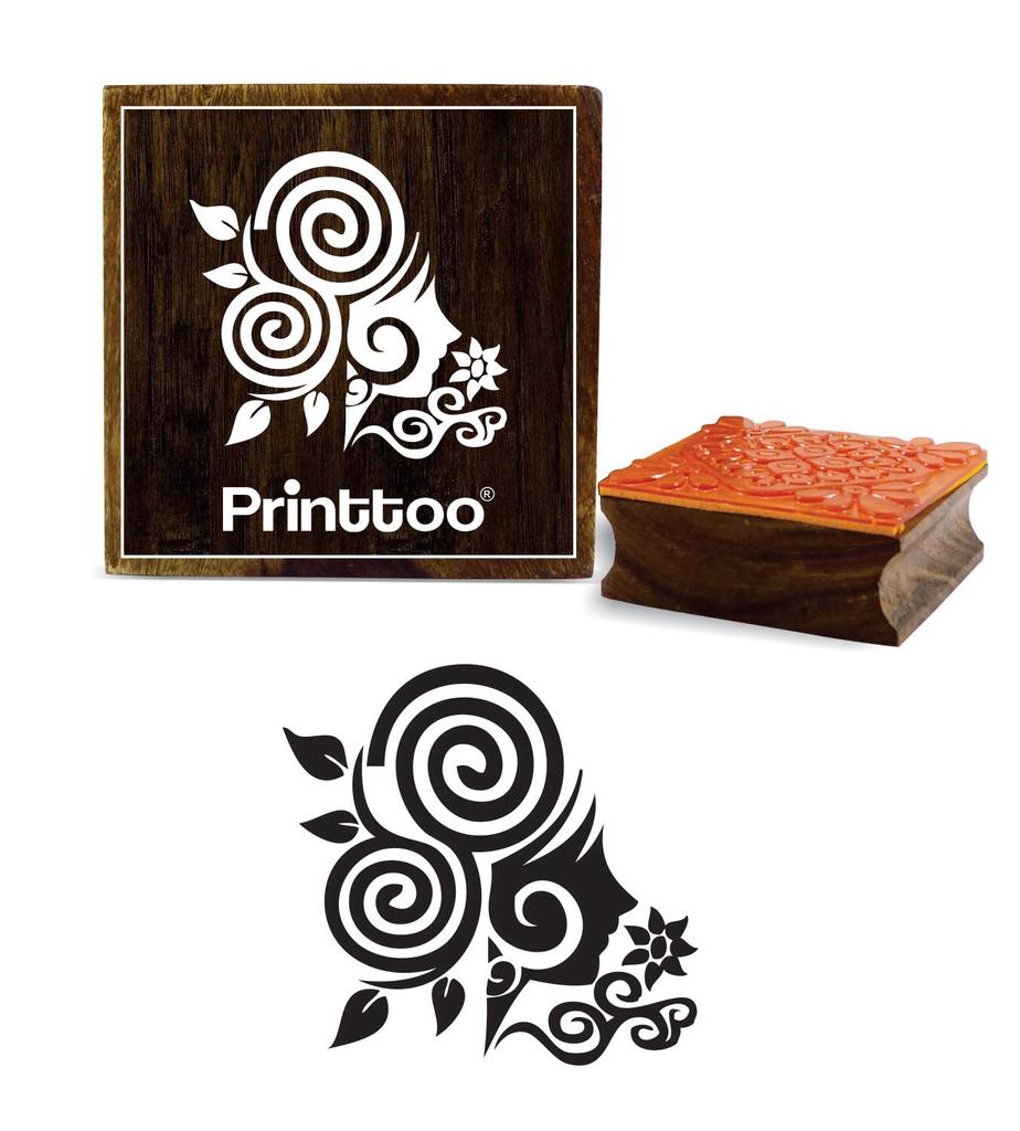 Printtoo Деревянное женское лицо с цветочным узором Квадратный резиновый ремесленный текстильный штамп-2 x 2