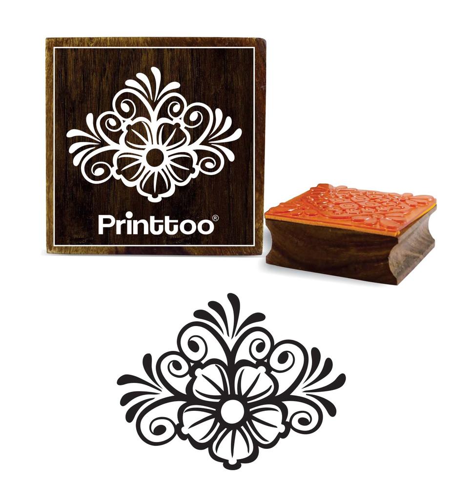 Printtoo Цветочный узор Деревянный резиновый штамп Скрап-букинг Текстильные квадратные штампы-2 x 2