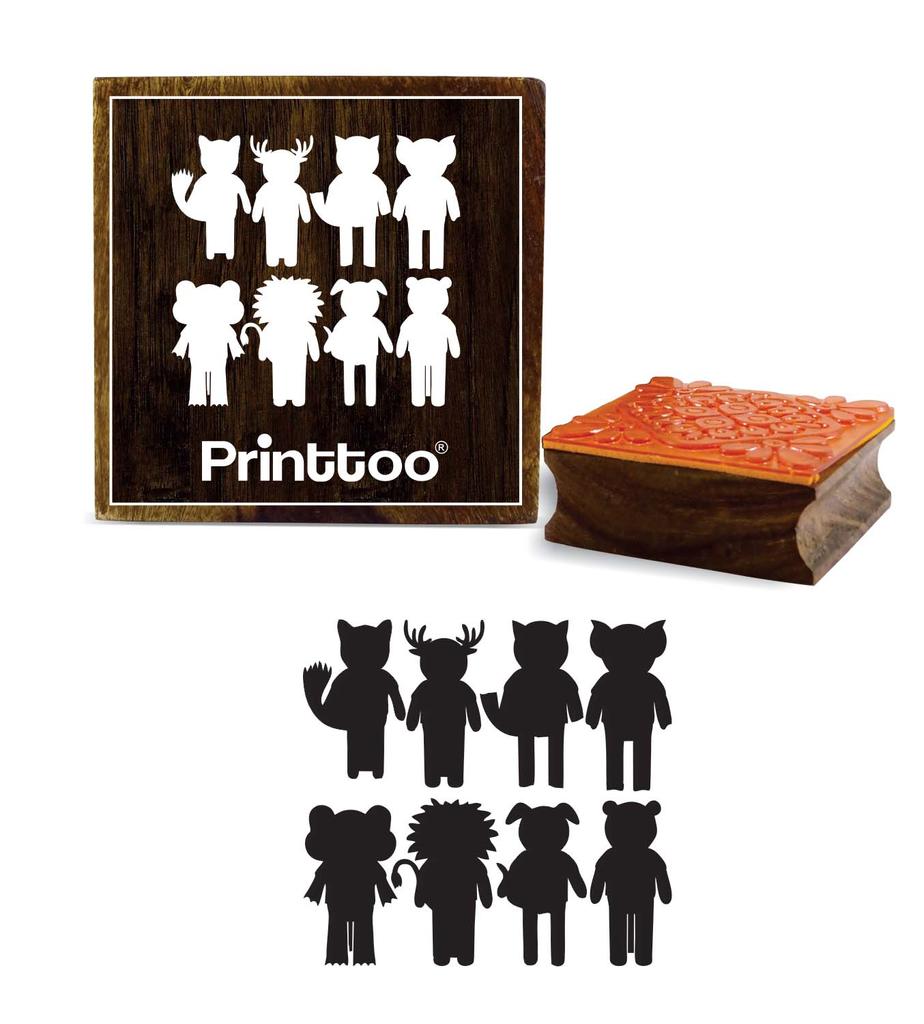 Printtoo Cartoon Animals Vector Pattern Square Wooden Rubber Stamp Craft Stamps Block-2 x 2