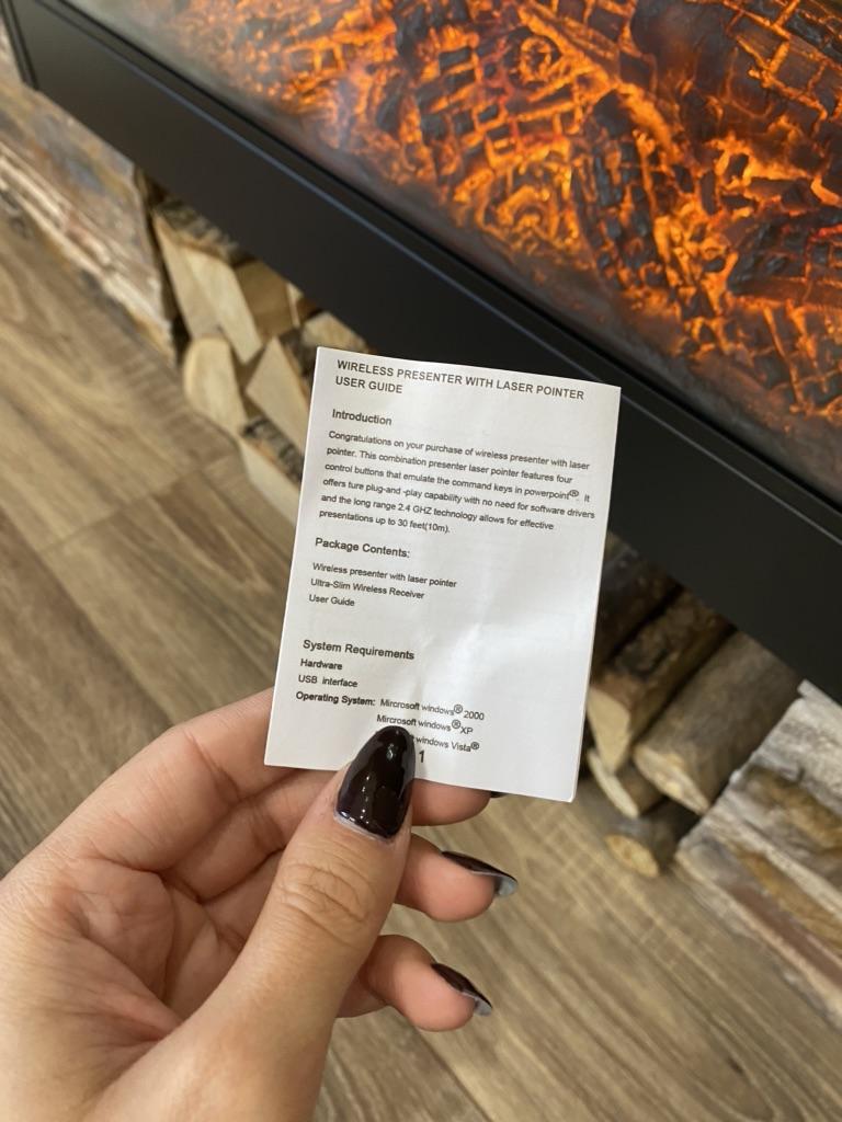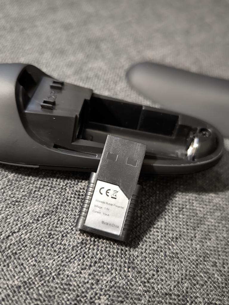 Презентационный кликер Укомплектован USB ресивером. Он необходим для того чтобы сконектить сам кликер и ноут/ПК. Для этого нужно просто вставить ресивер в порт на ПК. Удобно, что он находится внутри корпуса кликера, там есть для него специальное местечко. Не потеряется. Работает от одной батарейки ААА, в комплект не входит. Выполнен из очень приятного на ощупь прорезиненного пластика. Хорошо лежит в руке. Отличный. Рекомендую 🤗