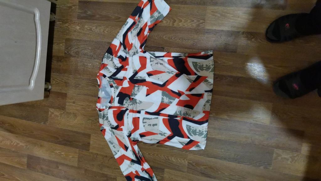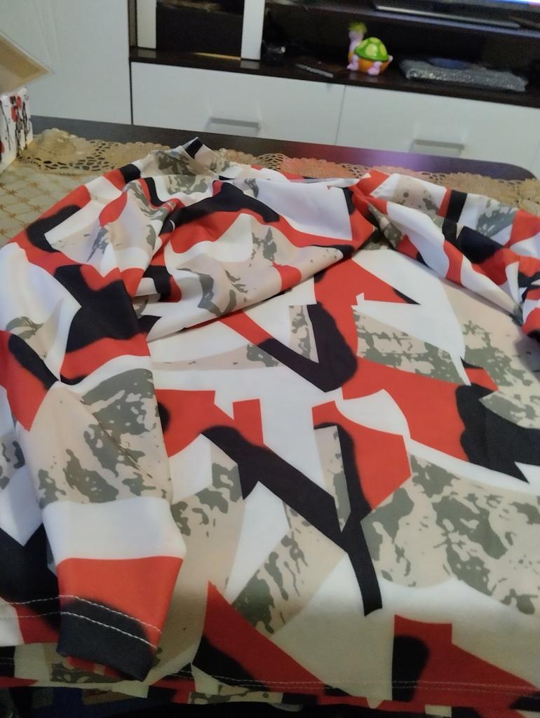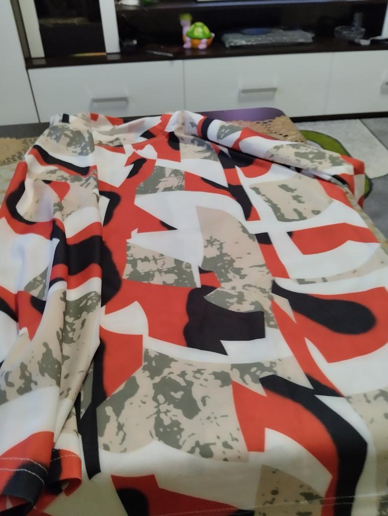 Кофтой недовольна, расцветка похожа, но не такая в оригинале на фотографии. Сайта у кофты. Тёмные. Рисунки - они намного больше и серые, а белого очень мало, здесь же наоборот. То есть я заказала себе только из-за того, что там нету преобладания белого, что кофта в итоге тёмная. А так же неправильная горловина. На фотографии горловина. Без кантика. По факту идёт чисто, как футболка. И абсолютно прямой покрой, если в бёдрах как раз-то плечи висят.