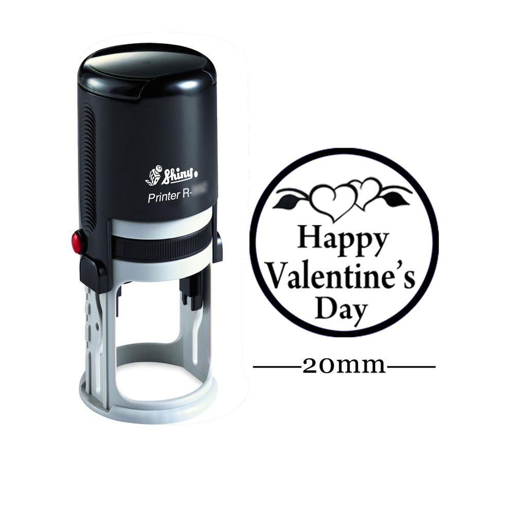 HAPPY VALENTINE'S DAY Round Self Inking Valentine Stamp 20mm Mini Shiny Mounted Rubber Love