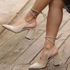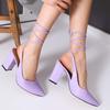 Бирюзовые туфли-лодочки из искусственной кожи на толстом каблуке для женщин Сандалии с ремешком на щиколотке для женщин Повседневная обувь Ma-028