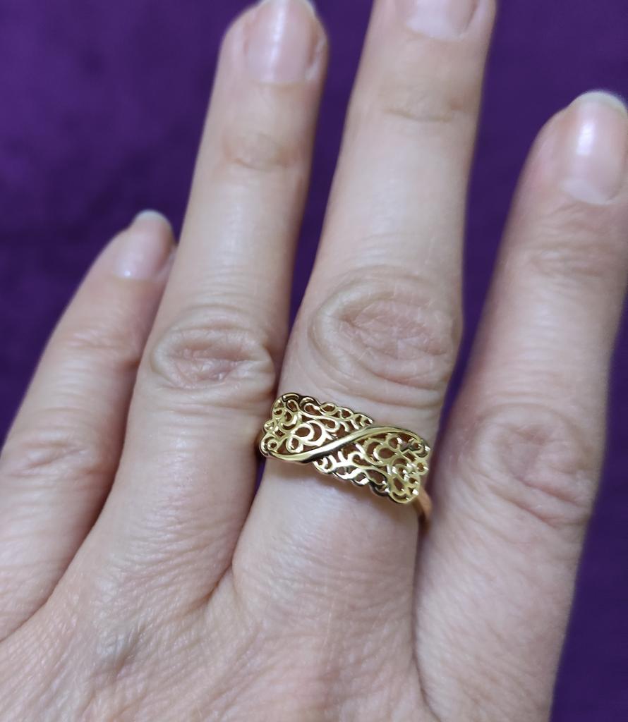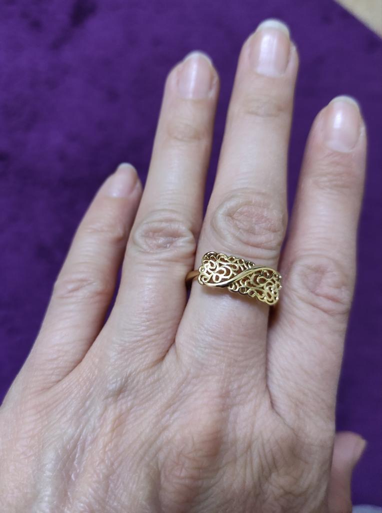 Кольцо сделано аккуратно. Внешне похоже на золото. Цвет не такой жёлтый как на фото.